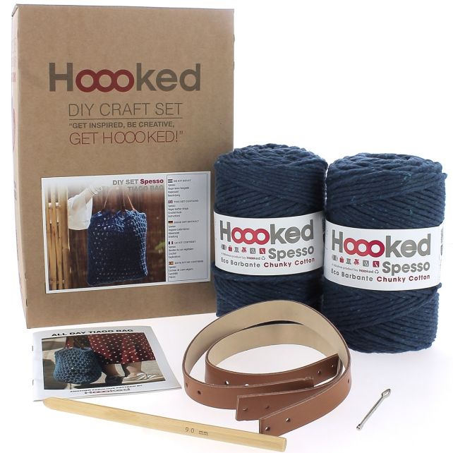 Das dicke Spesso-Garn verleiht dieser Tasche einen coolen Look, den wir lieben! Wenn du die Grundlagen des Häkelns kennst und nach einem einfachen Projekt für eine Häkeltasche suchst, ist dieses DIY-Set genau das Richtige für dich!