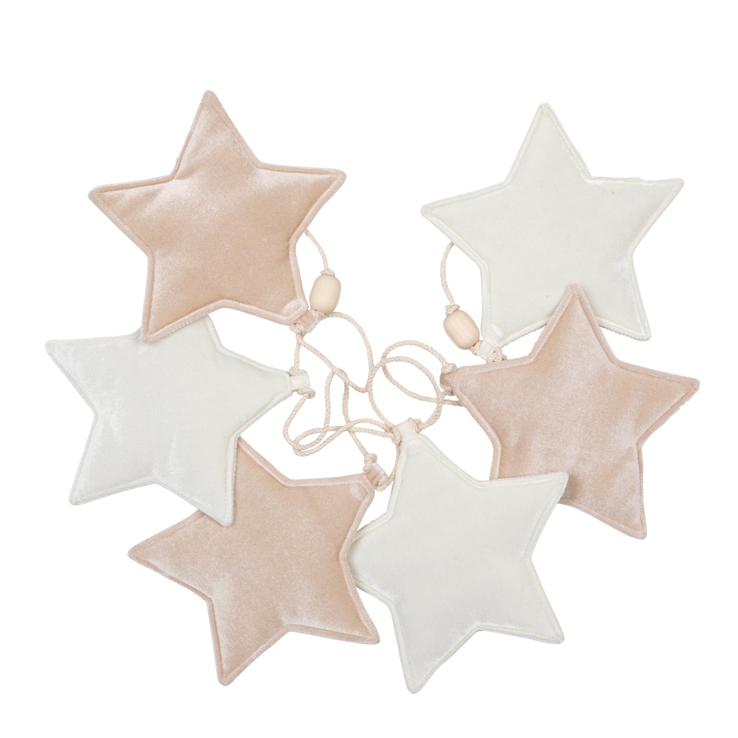 Denne elegante fløjls guirlande i beige støv farve med stjerner tilføjer varme og magi til ethvert rum. Den luksuriøse fløjlstekstur og de smukke stjerner skaber en hyggelig og drømmende atmosfære.