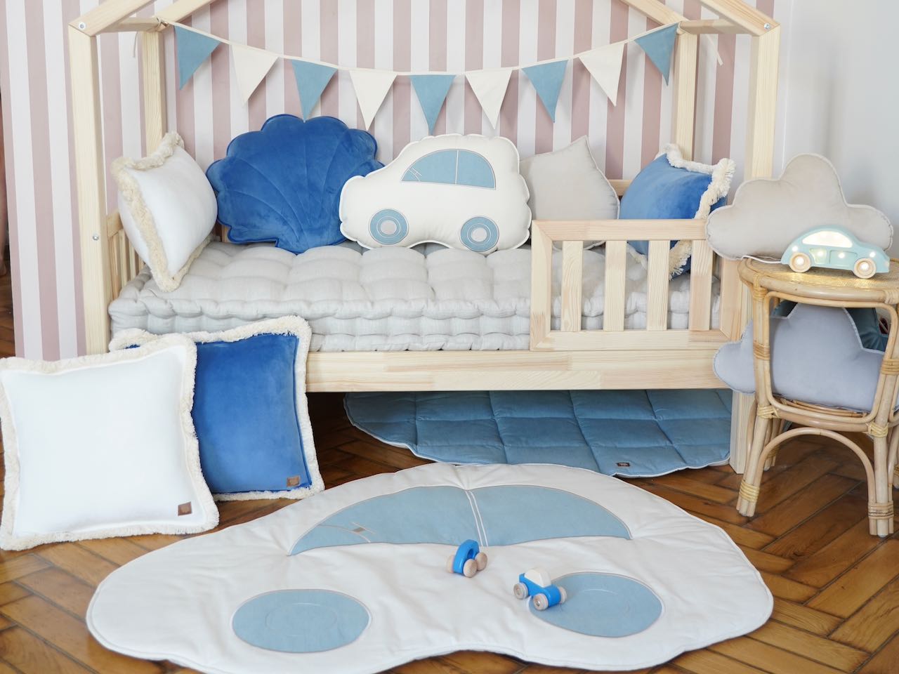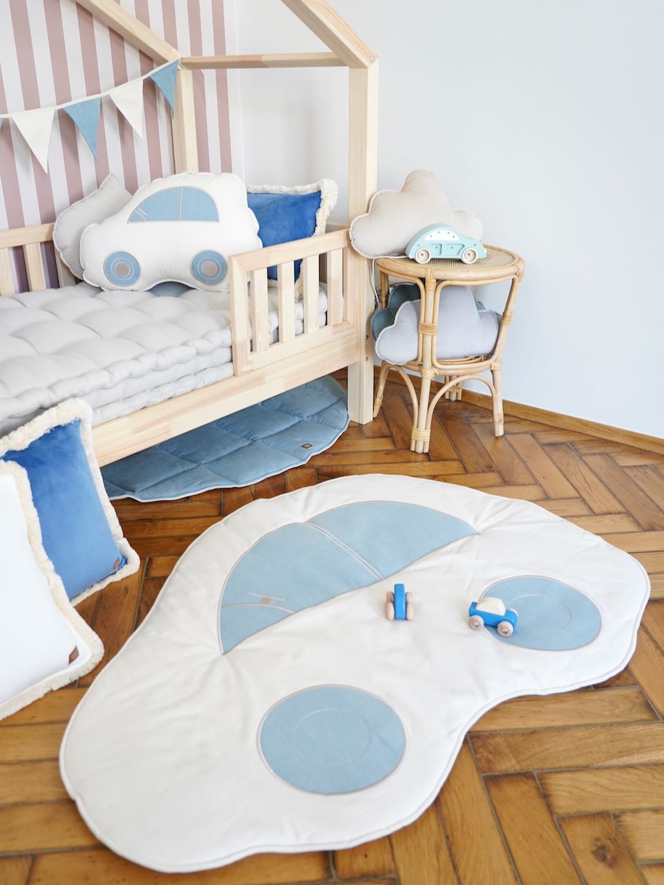 Leder du efter en unik legemåtte eller puslemåtte til dit barns værelse? Vores måtte i form af en bil er lavet af materialer af højeste kvalitet - bomuld og linned, som garanterer holdbarhed.
