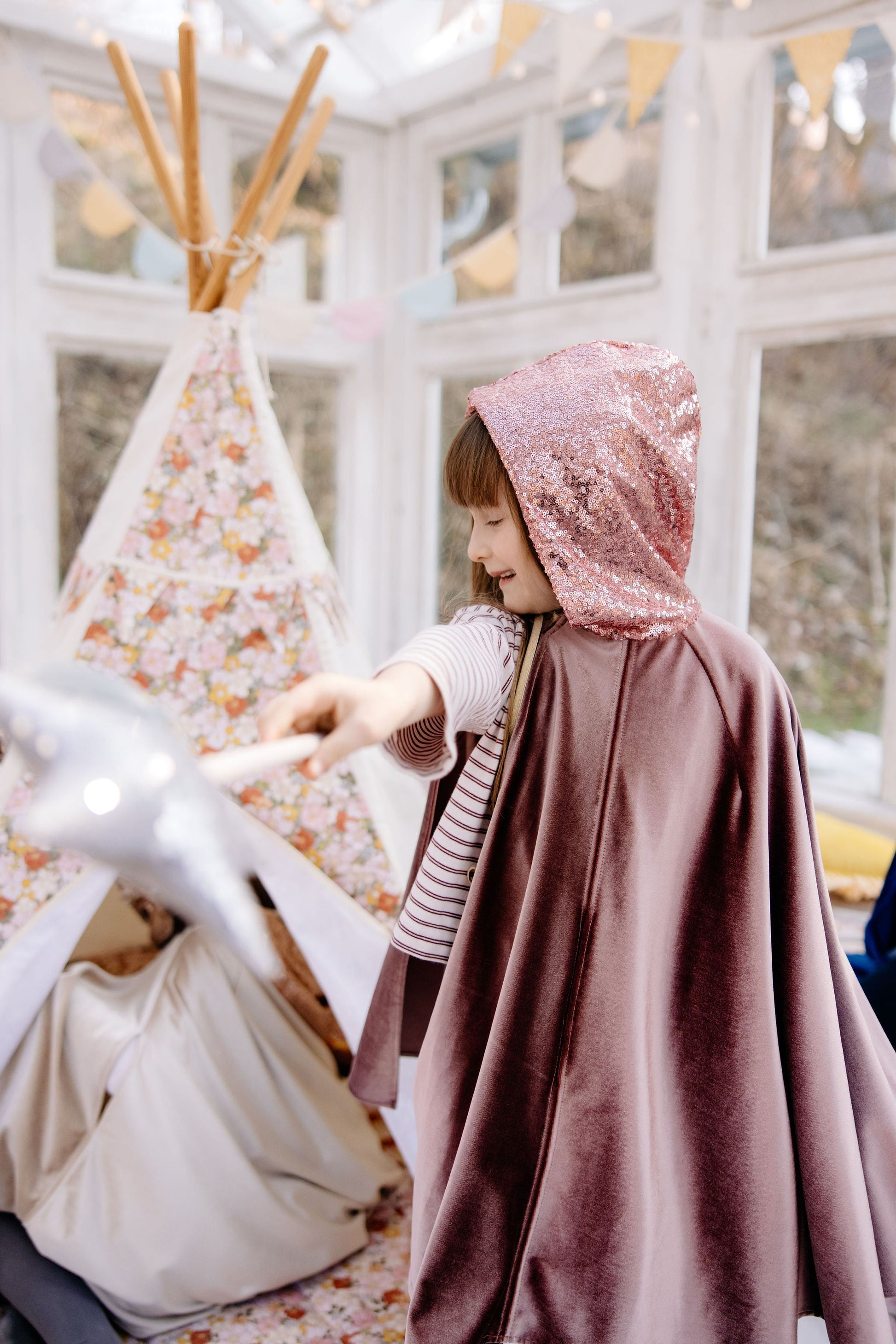 En kappe er et must-have, hvis du vil spille en dronning, en troldkvinde, en fe, en troldmand eller vil til maskebal eller trick-or-treat på Halloween. Kort sagt, den er essentiel til så mange roller! Du vil bare ikke tage den af!