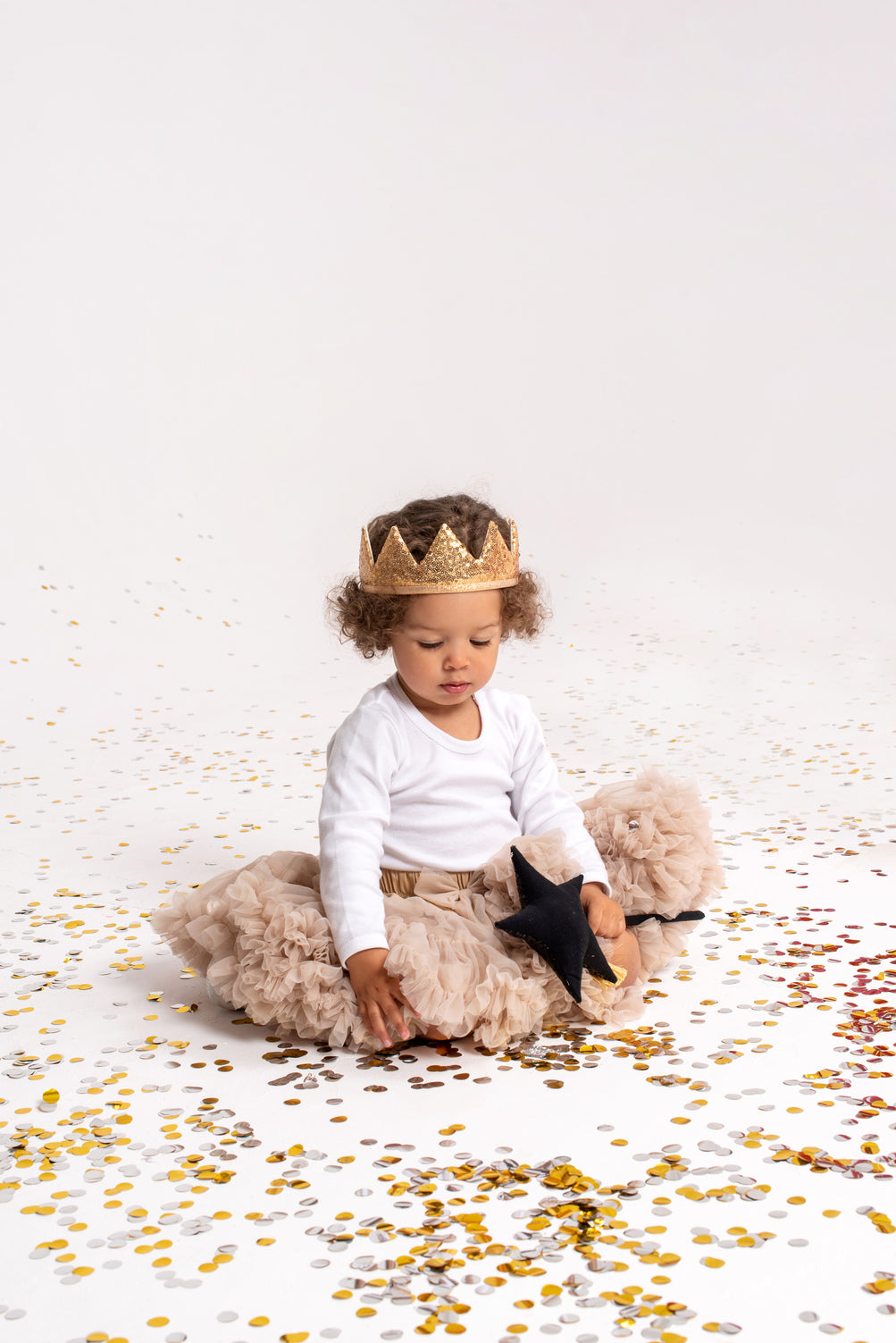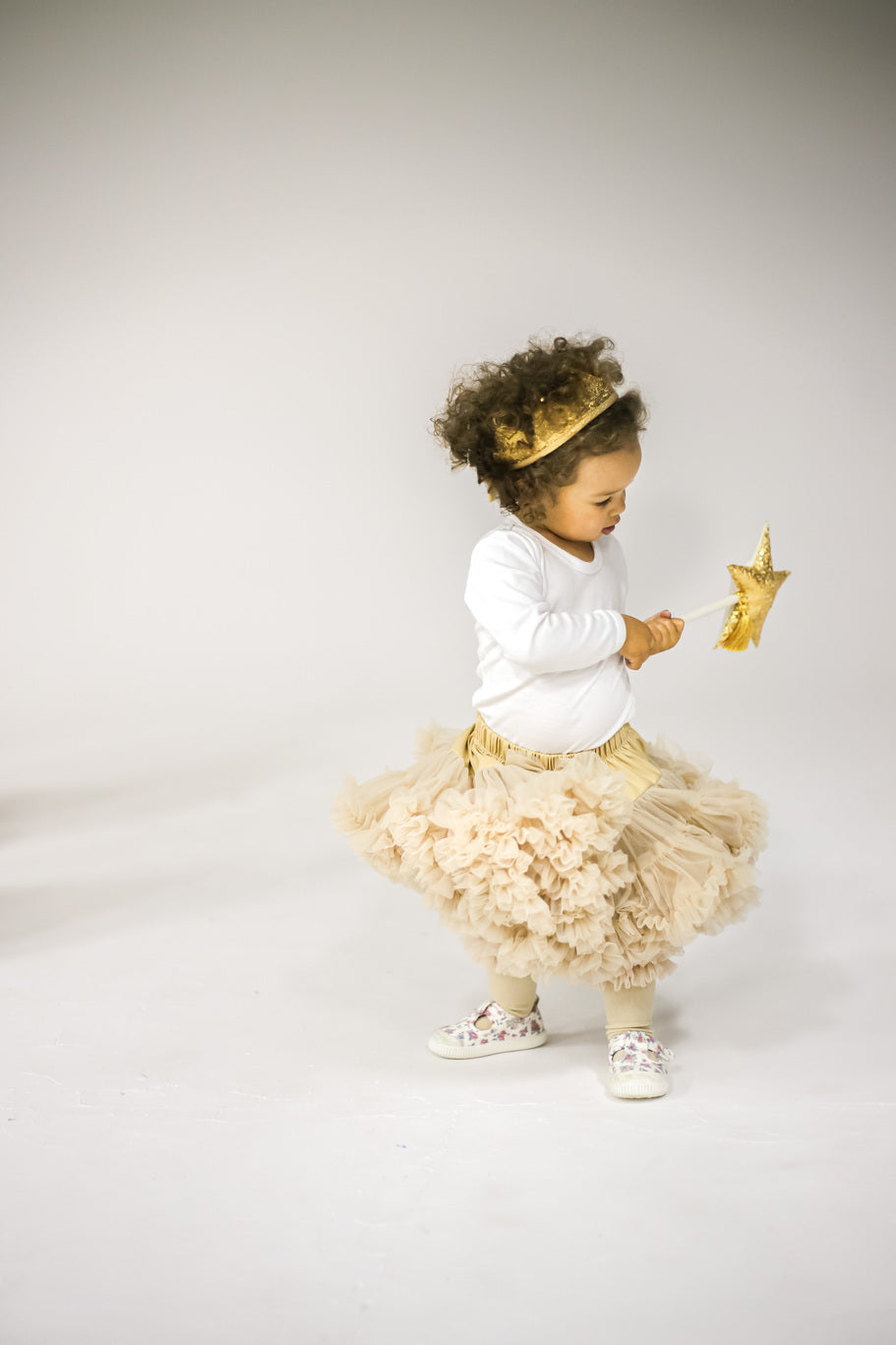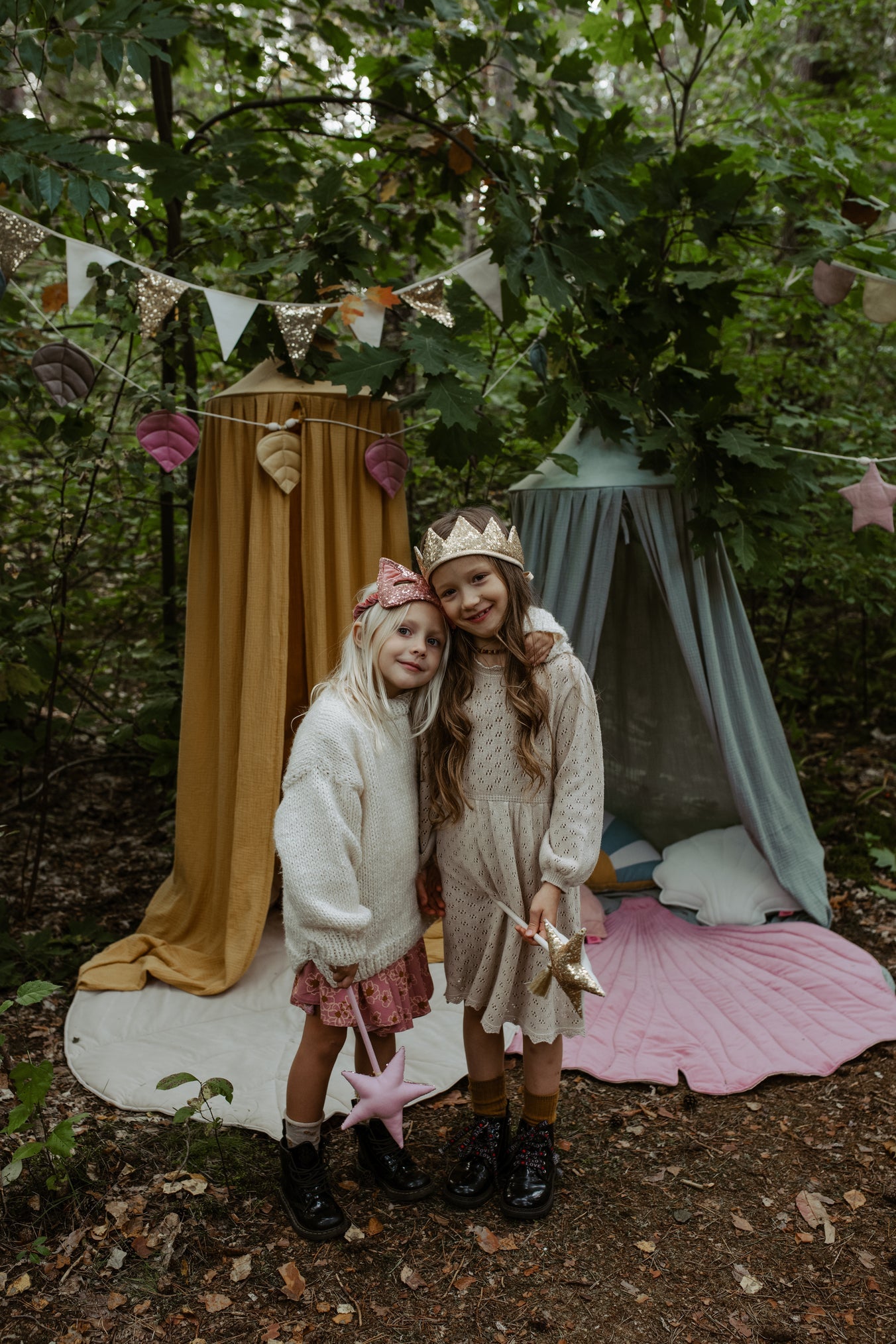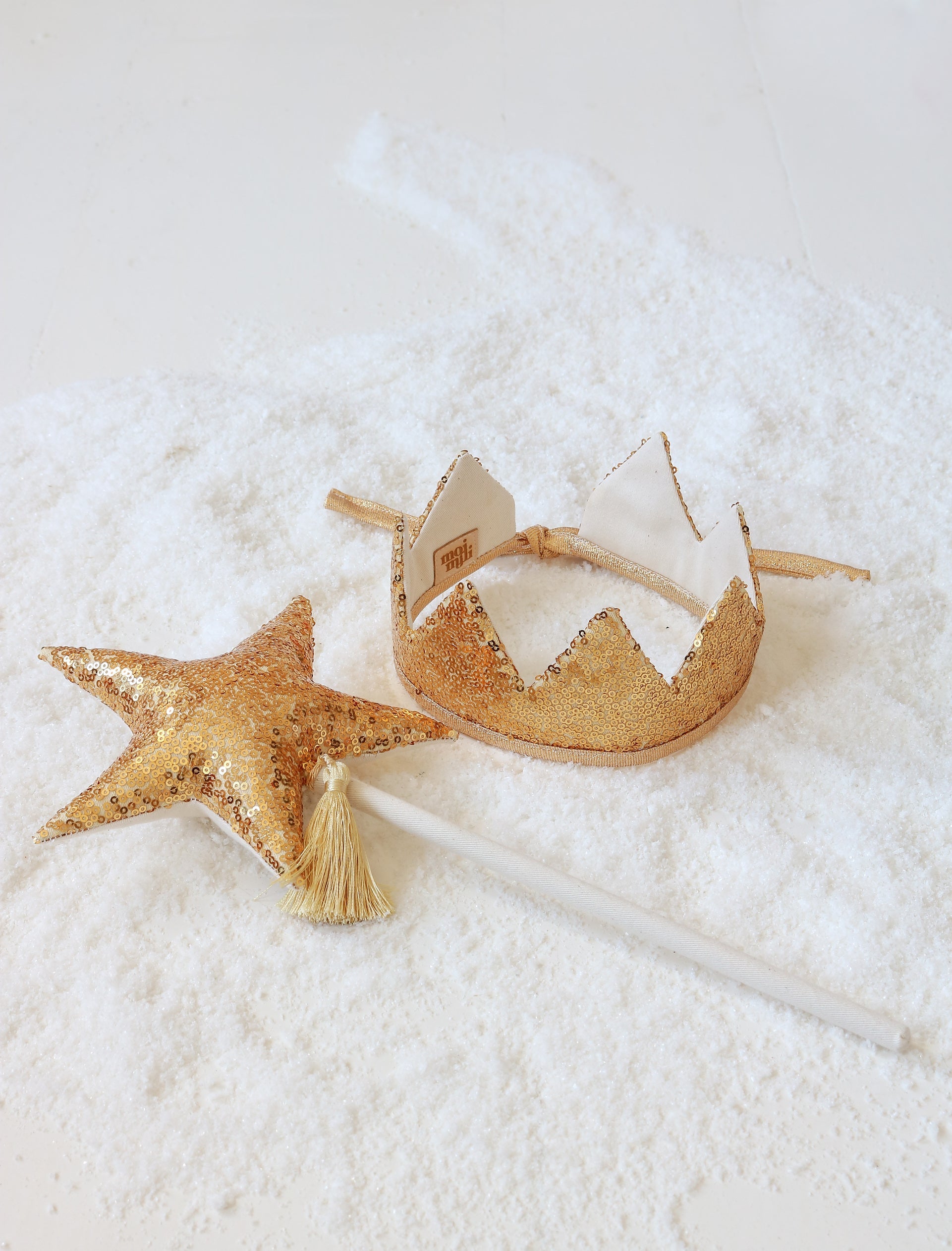 - Sættet består af to elementer: en krone og en tryllestav, begge guld-farvede