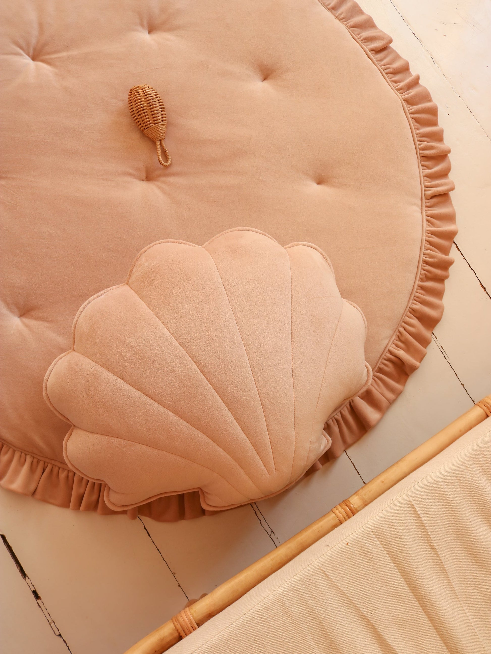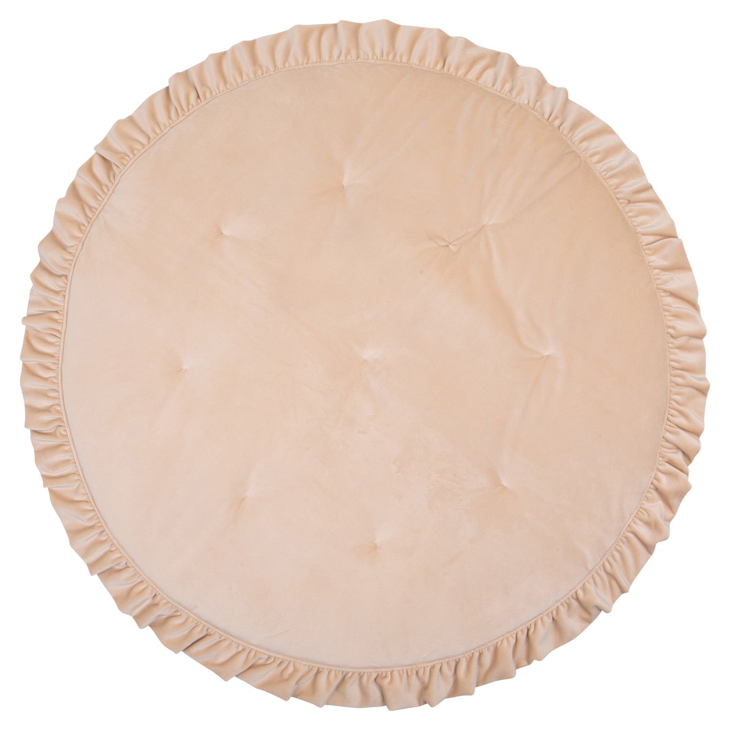 Denne elegante bløde fløjlsmåtte i latte-farve med smukke frynser tilføjer varme og komfort til ethvert rum. Den luksuriøse fløjlstekstur og de dekorative frynser skaber en hyggelig og stilfuld atmosfære.