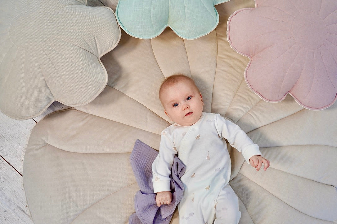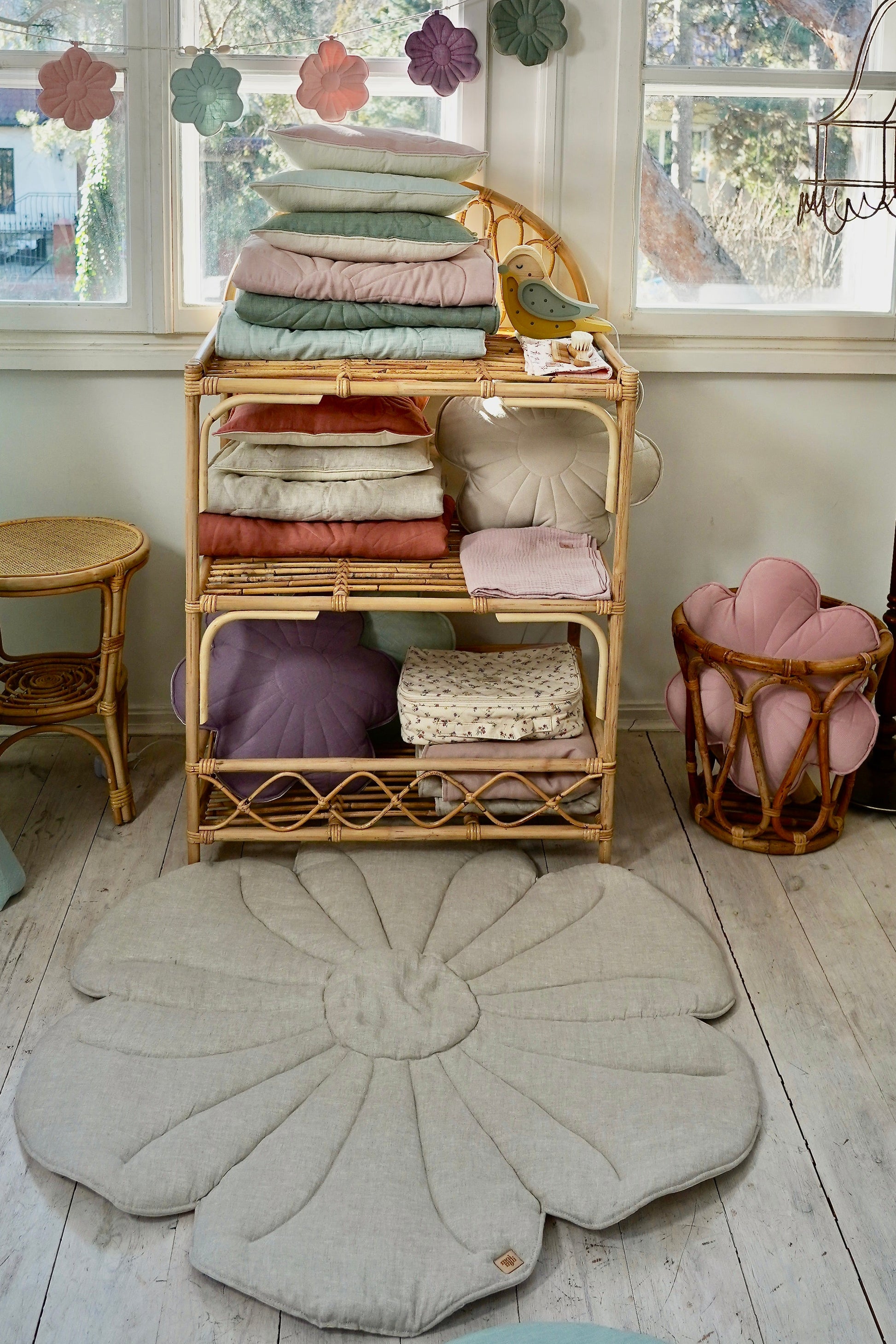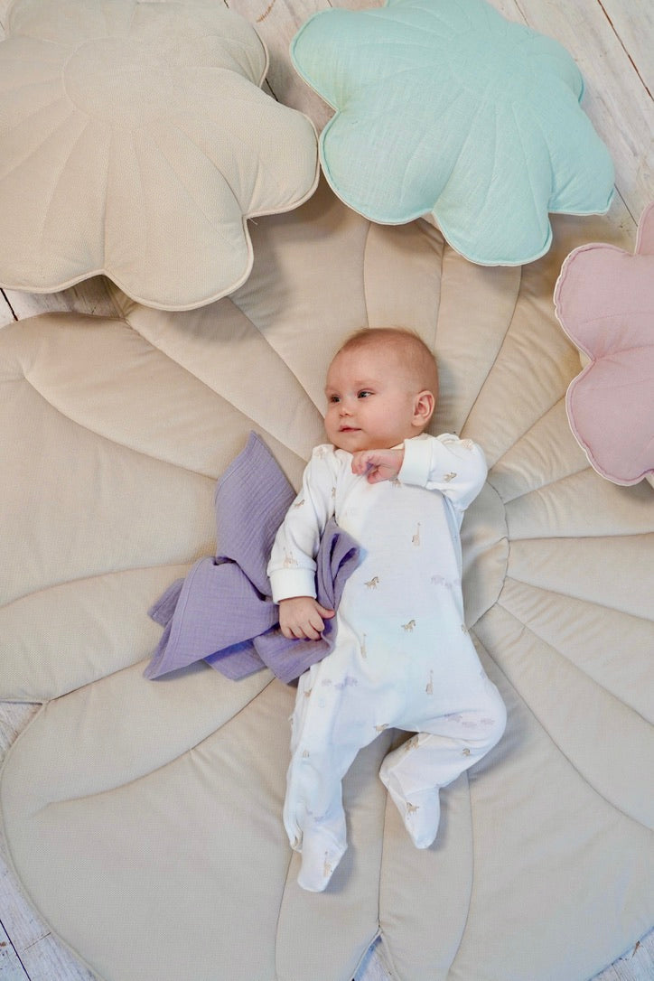 Denne elegante fløjlsblomst måtte i creme yucca farve tilføjer varme og komfort til ethvert rum. Den luksuriøse fløjlstekstur og det smukke blomstermønster skaber en hyggelig og stilfuld atmosfære.